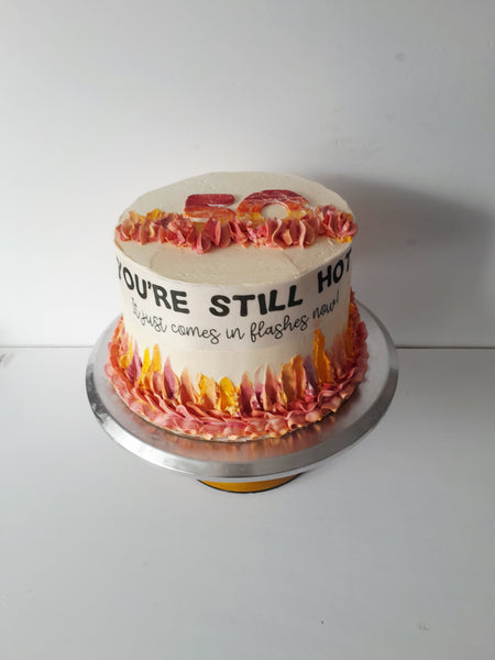 Birthday Cake, "Hot Flash" you're still hot...it just comes in flashes now" birthday cake, 8 inch round, menopause cake, 50th birthday cake