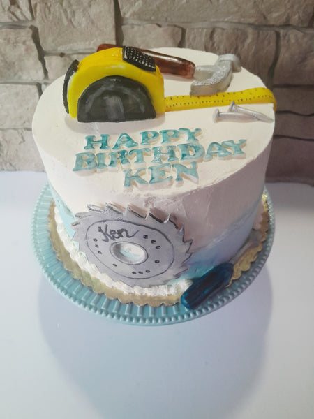 custom birthday cake, GARAGE/Tool themed 8 inch round