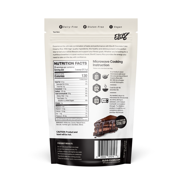 Experience the ultimate combination of taste and performance with Elev8 Chocolate Cake creamy rice. With all-natural ingredients, this healthy and delicious snack is the perfect way to fuel your active lifestyle and support your fitness goals. Whether you're looking for a nutritious breakfast or a post-workout boost, Elev8 creamy rice provides the energy you need to take on the day with confidence.