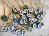 See our cupcake toppers for a customized cakepop tag that can be produced to suit your event theme or color scheme. (We can incorporate a personal sentiment or company logo on each cakepop tag. Additional charge will apply.)