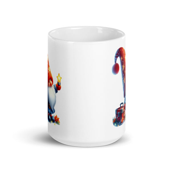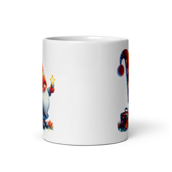 Mug, glossy white mug, Christmas gnome with light bulb mug, gnome mug, novelty cup Christmas