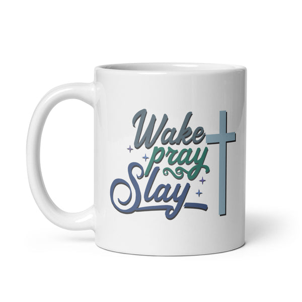 Mug, white glossy mug, Wake pray slay mug, Christian mug, religious mug, motivational mug