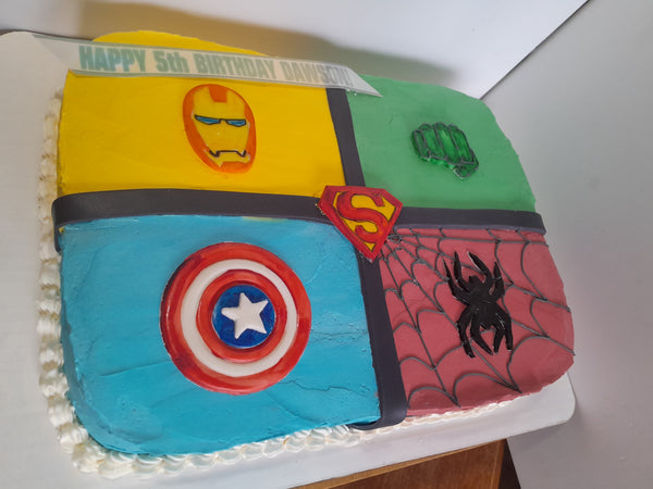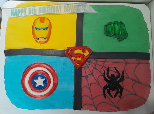 SUPER HERO CAKE 11 x 14 sheet CAKE, with FONDANT DETAILS