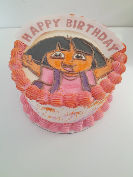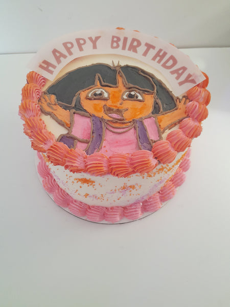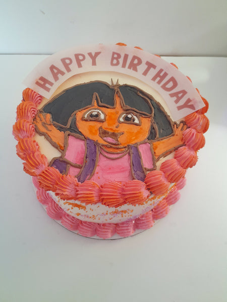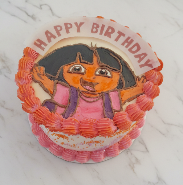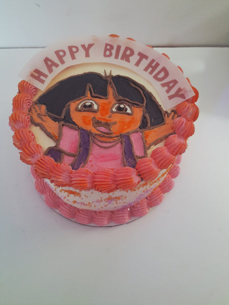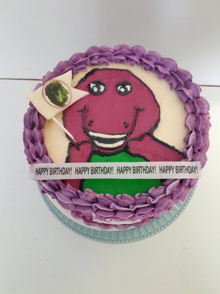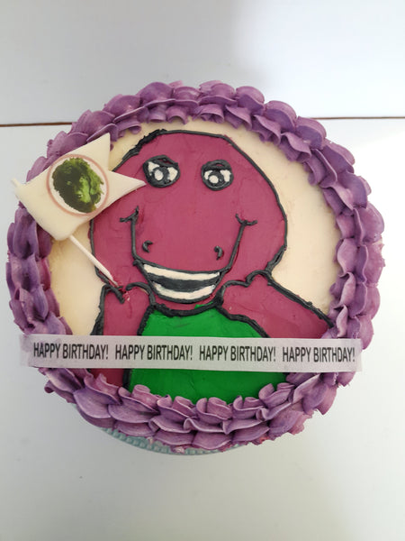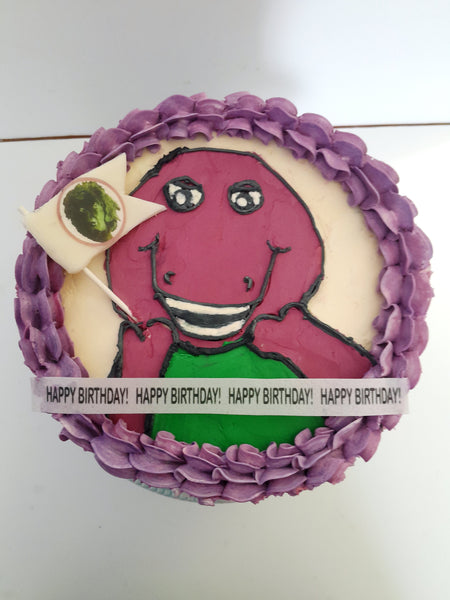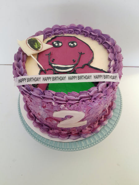 Saturday Feb 7 an 8 inch cake Barney themed for a 2 year old dog ( for daughters though😊) with dog image incorporated