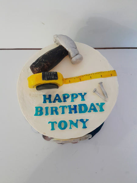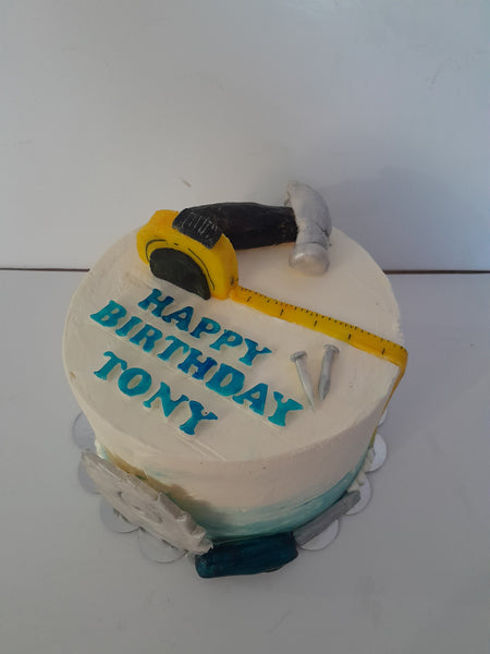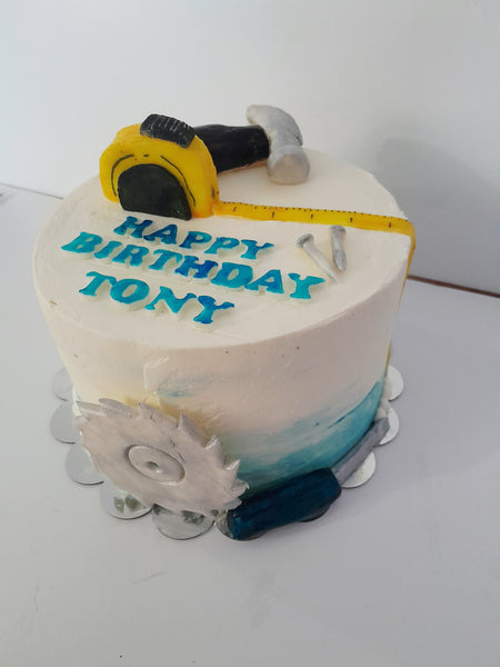 custom birthday cake, GARAGE/Tool themed 8 inch round