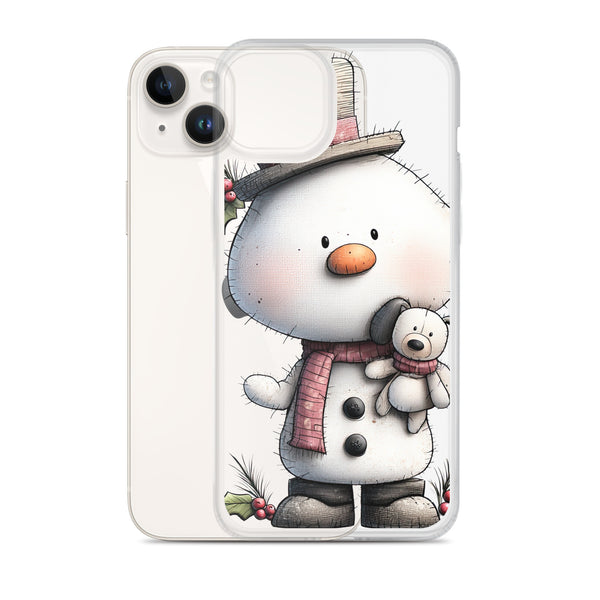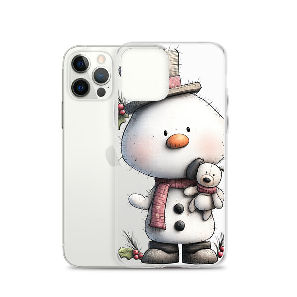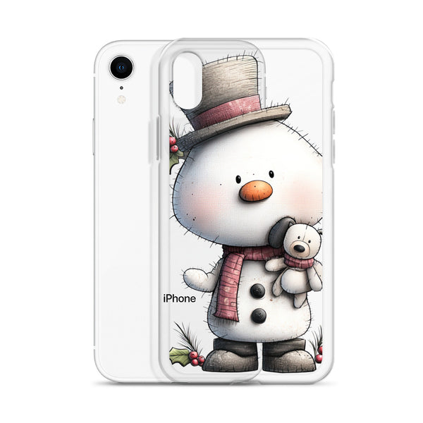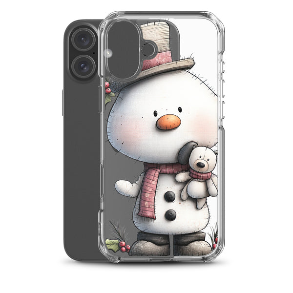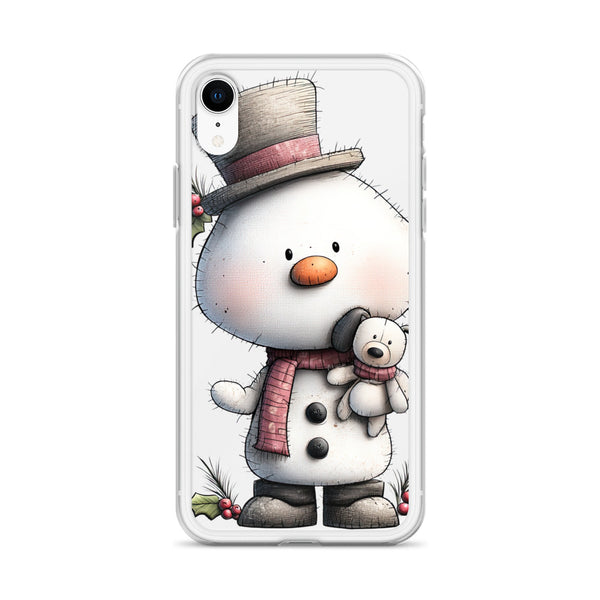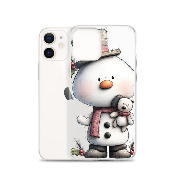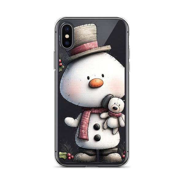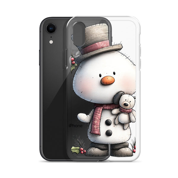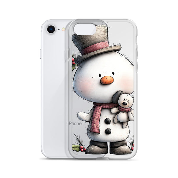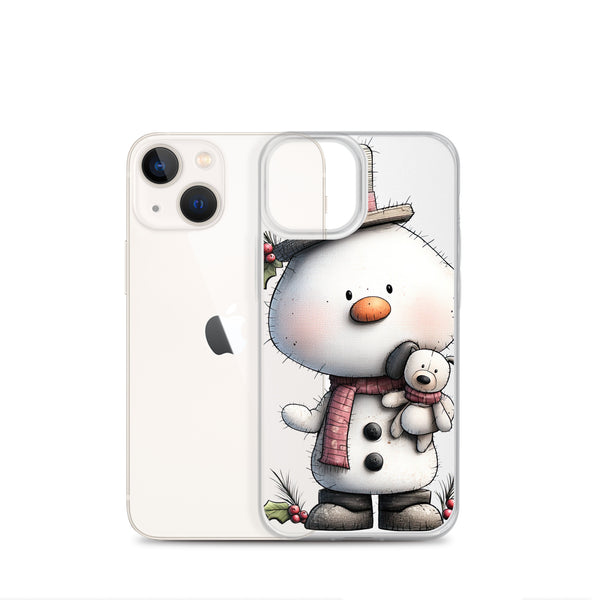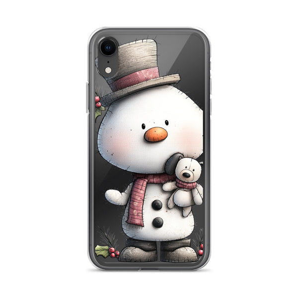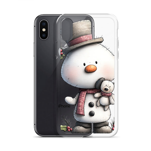 Clear Case for iPhone® funky snowman with teddy bear, teen girl gift, phone case, gift for teens