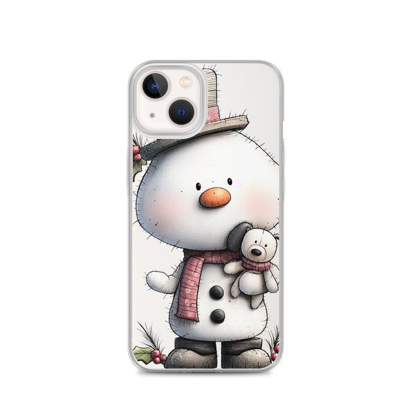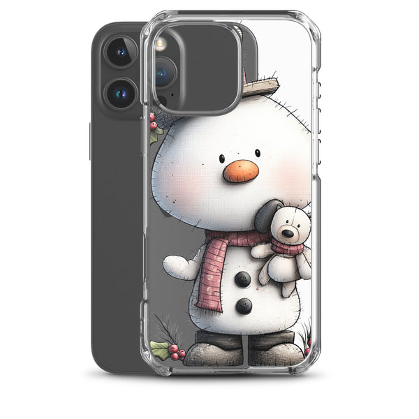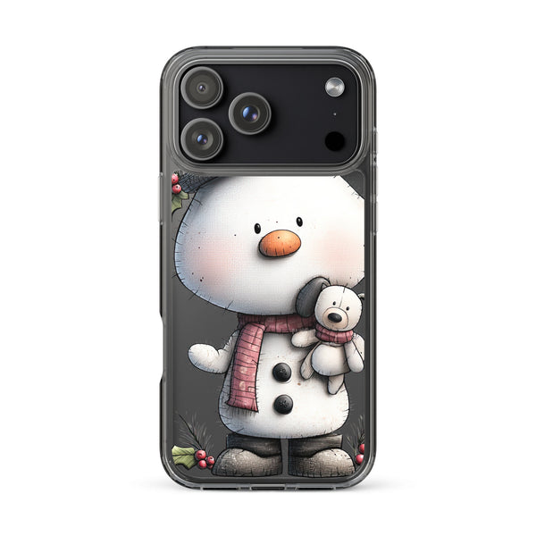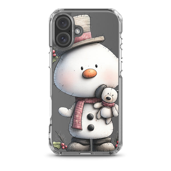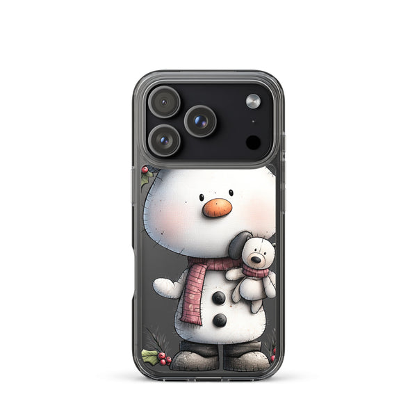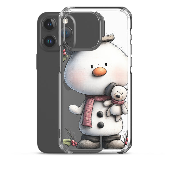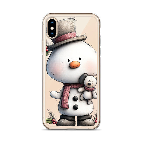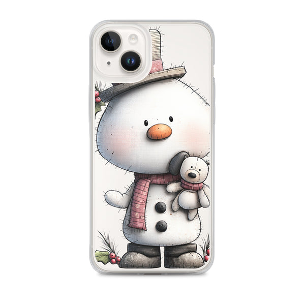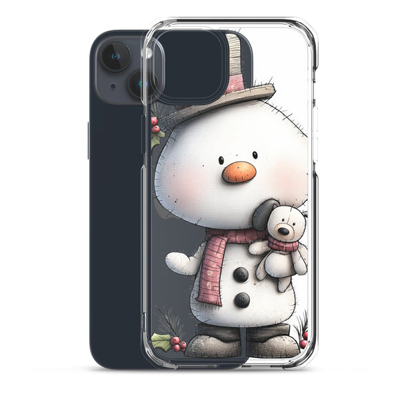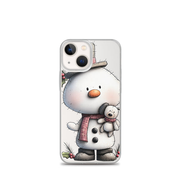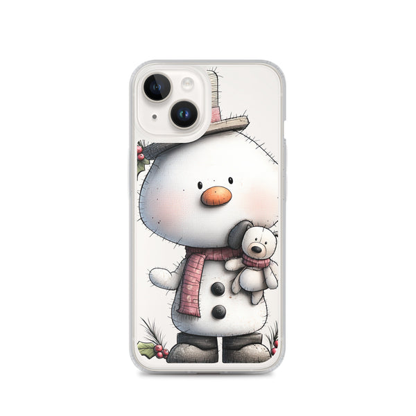 Clear Case for iPhone® funky snowman with teddy bear, teen girl gift, phone case, gift for teens