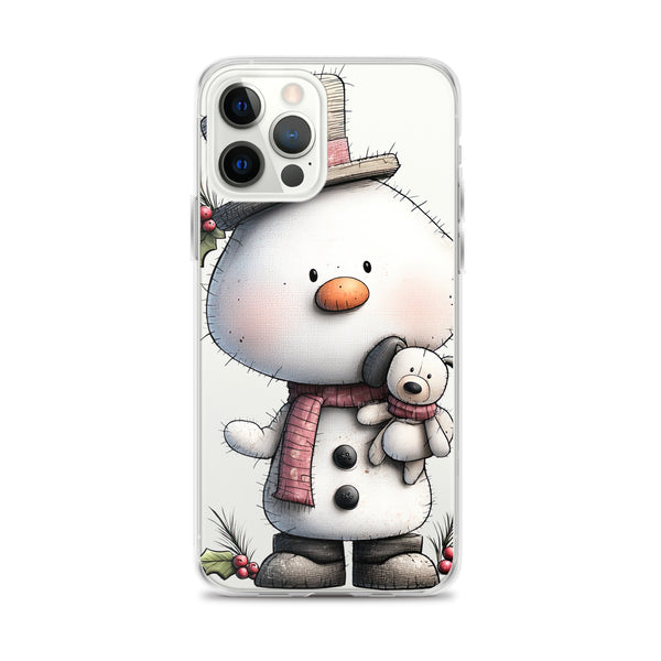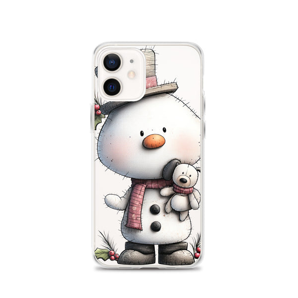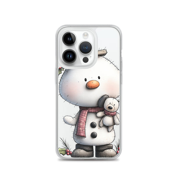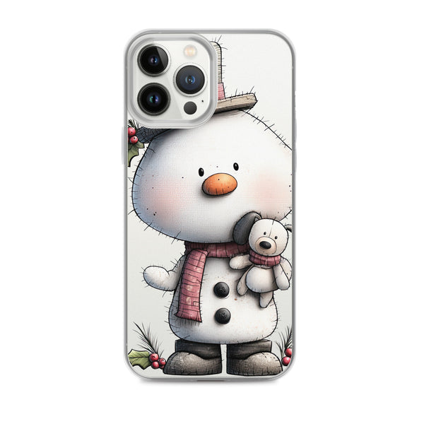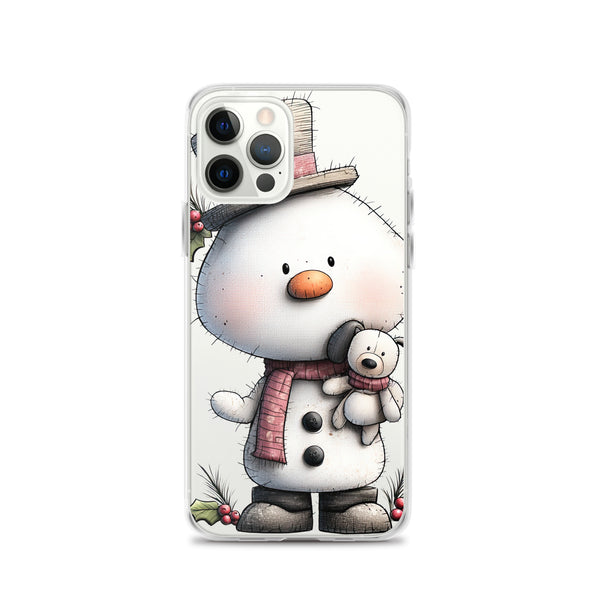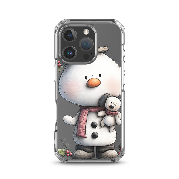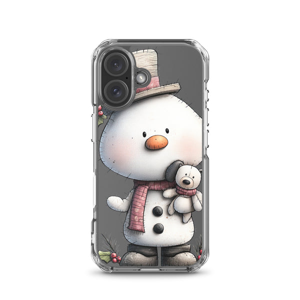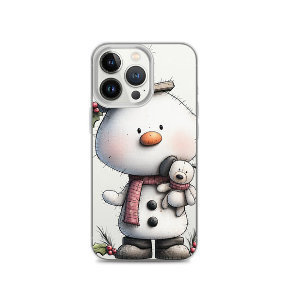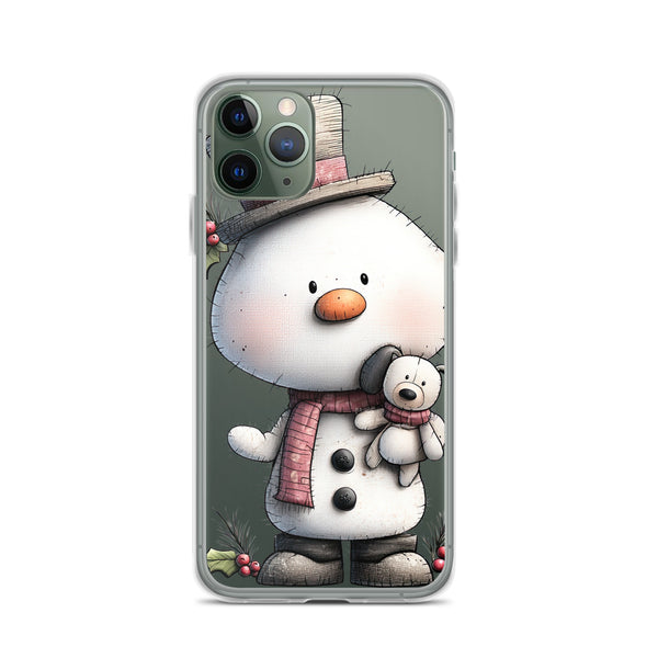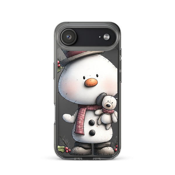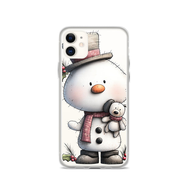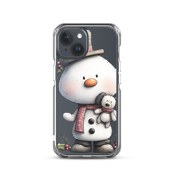 Clear Case for iPhone® funky snowman with teddy bear, teen girl gift, phone case, gift for teens