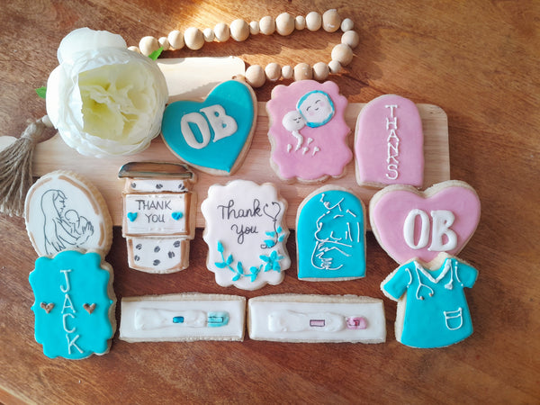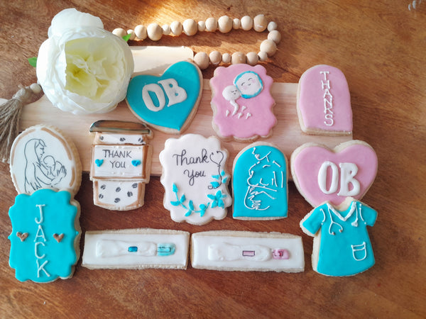 Cookies 1 dz OB themed cookies, obstetrician, Obstetrics, birth of child, cookie set, childbirth, delivery of baby