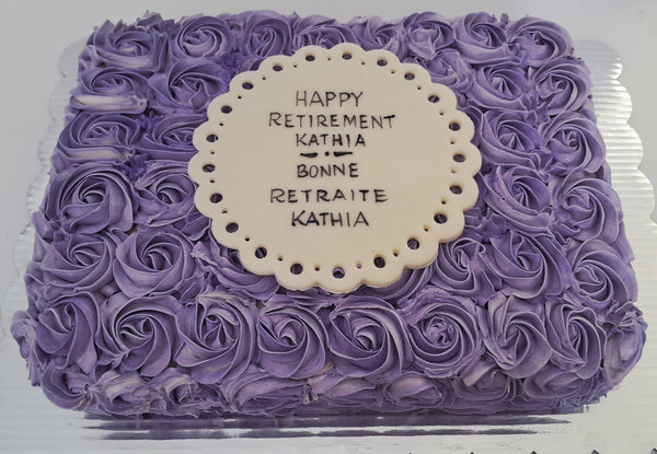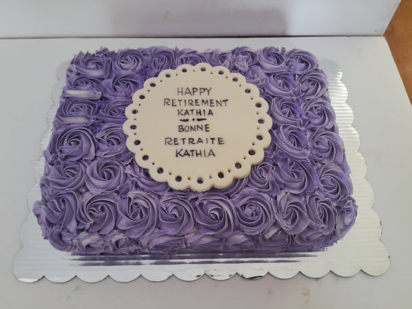 Prices vary depending on size and design choice. We can also provide you with a custom designed personalized cake topper to sit atop your delicious cake.