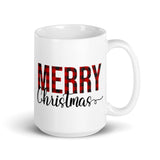 MUG, buffalo plaid, MERRY CHRISTMAS White glossy mug/Christmas/Holiday mug, cheery mug gift idea for morning coffee or hot chocolate , mugs