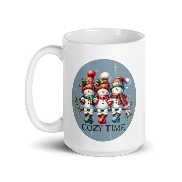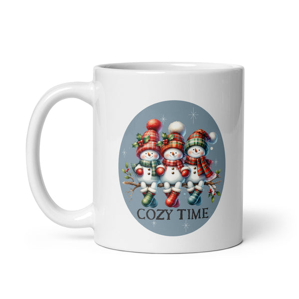 Mug, cozy time snowmen trio mug, winter mug, snowman mug, cozy mug