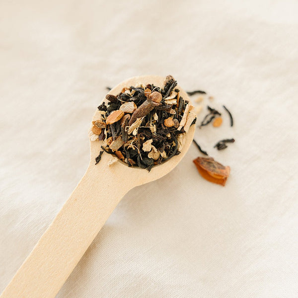 Rooted in tradition and full of spice, this bold blend brings warmth to every cup. Seven organic spices—like cardamom, cinnamon, and clove—are balanced with robust Assam black tea for depth and richness. Perfect with milk and honey, or sipped strong on its own. A grounding companion for chilly mornings or slow afternoons.