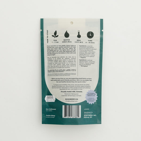 A calming herbal tea to help you unwind and ease into rest. Chamomile, lavender, lemon balm, and spearmint create a soft, floral blend that soothes the nervous system. Lightly sweet with a delicate finish, this tea is your gentle evening ritual. Breathe deeply, sip slowly, and let the day go.