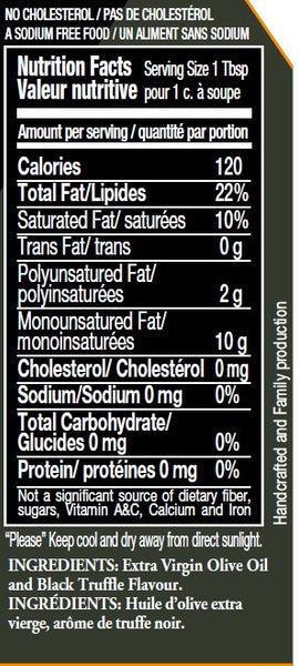 NON GMO truffle flavor on first cold pressed extra virgin olive oil (100% Italian). Double the value with a 250 ml x 2 dark glass bottles to protect the oleic acid and antioxidants of EVO.